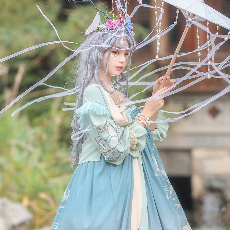 原创设计青荷洛丽塔连衣裙汉元素2021春季新款上衣襦裙两件套刺绣热门设计联盟服务商