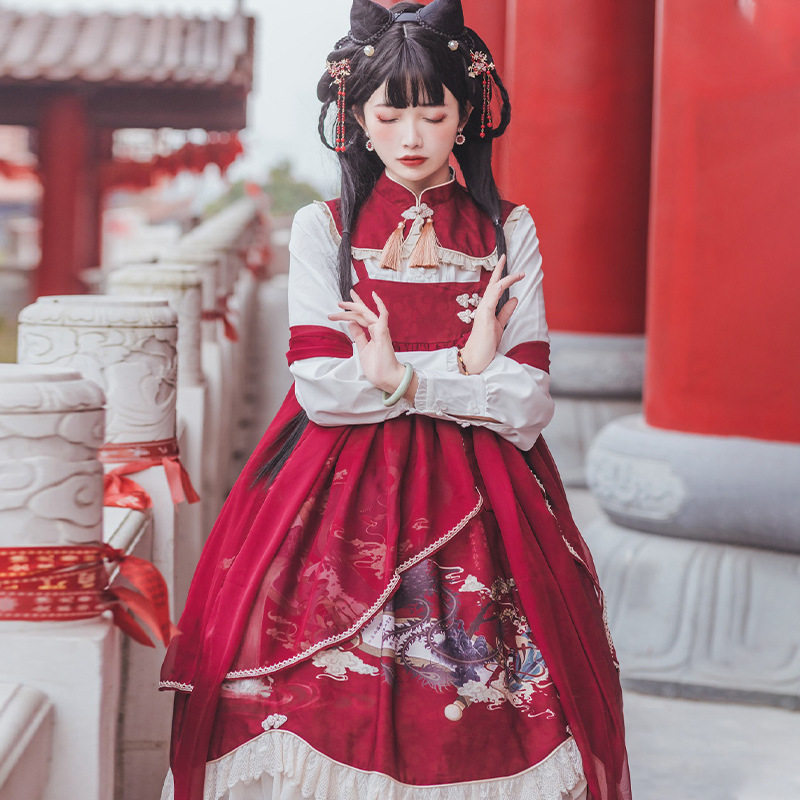 吊带连衣裙设计感小众2021春新款洛丽塔公主Lolita裙白衬衫女套装热门设计联盟服务商